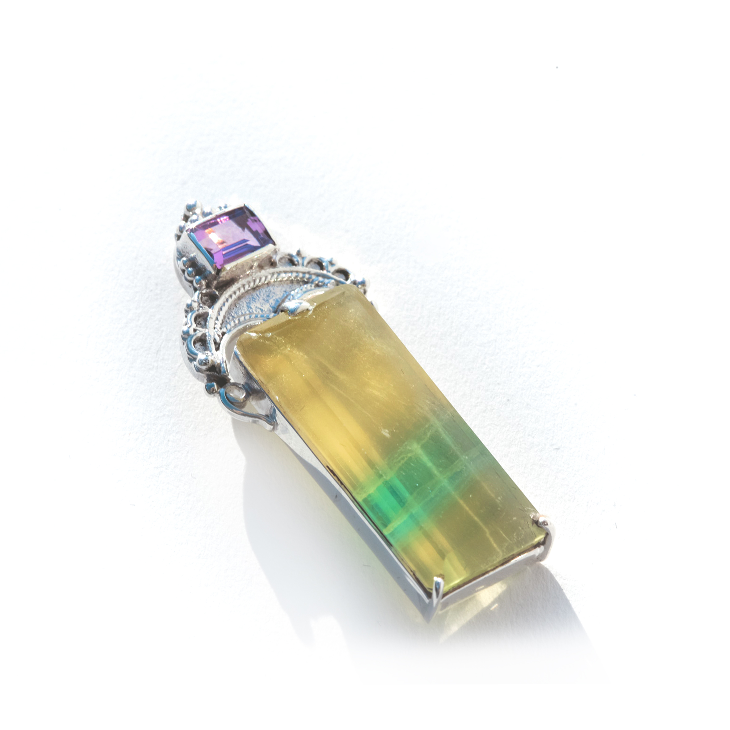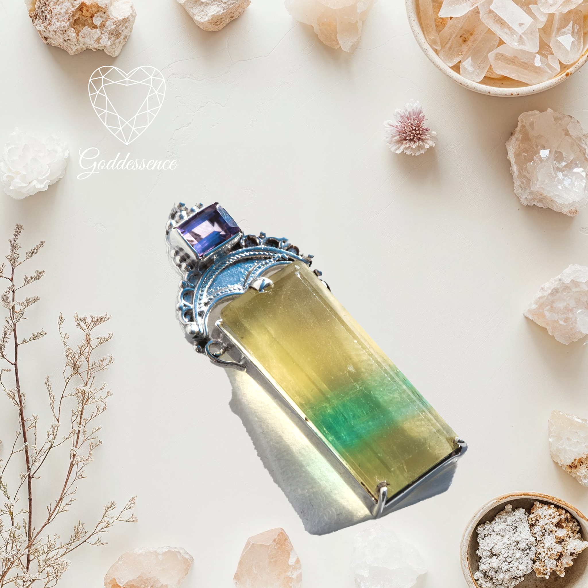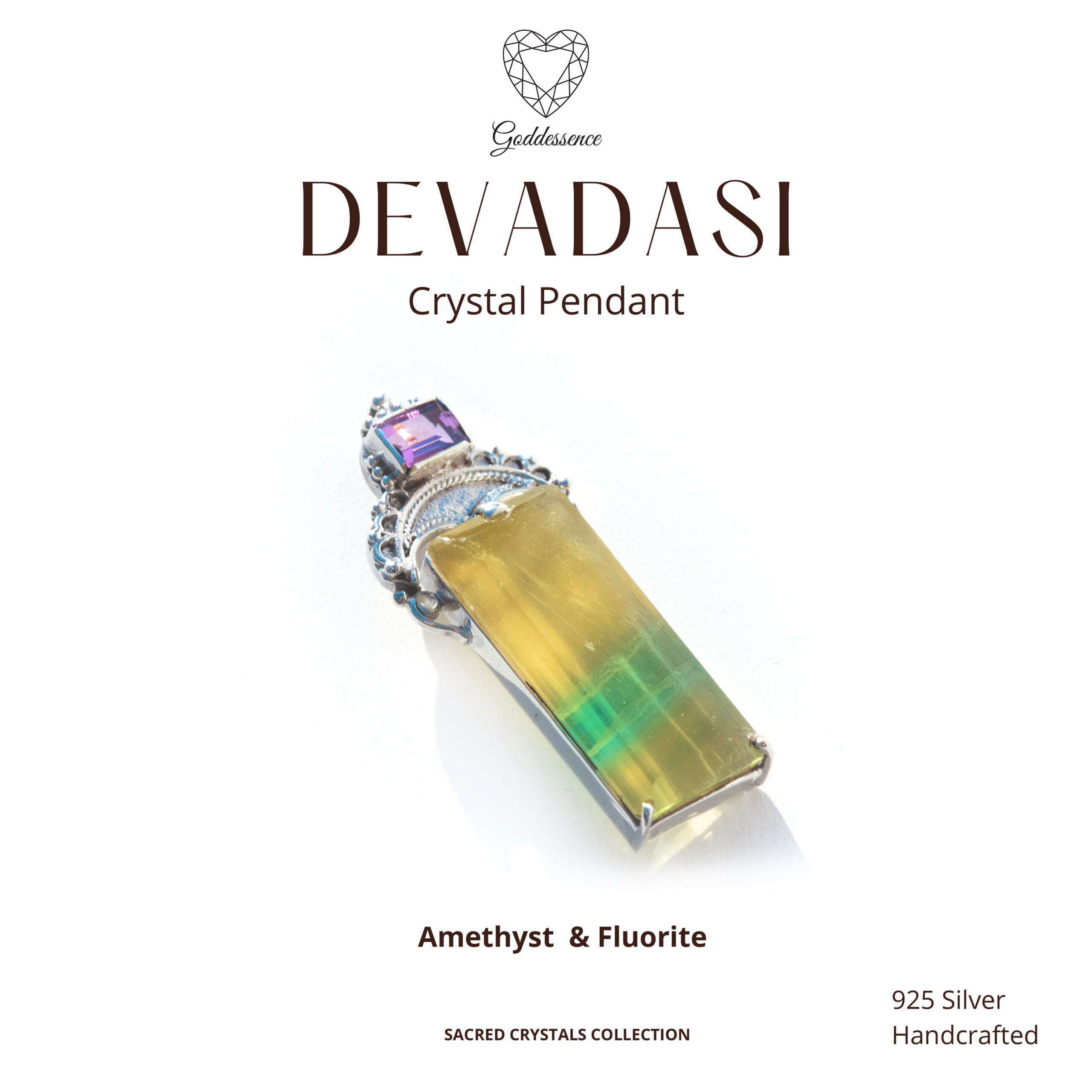 Namaste, fellow goddess. I am Devadasi, a divine vessel of sacred dance, inspired by the ancient temples. Through the harmonious blend of Amethyst and Fluorite, I awaken your inner goddessence. Amethyst opens your crown chakra, enhancing intuition and emotional balance. Fluorite purifies your energy, neutralizing negativity and promoting conscious relationships. Embrace your divine feminine essence, break free from outdated patterns, and let me guide you towards clarity, calmness, and spiritual growth.